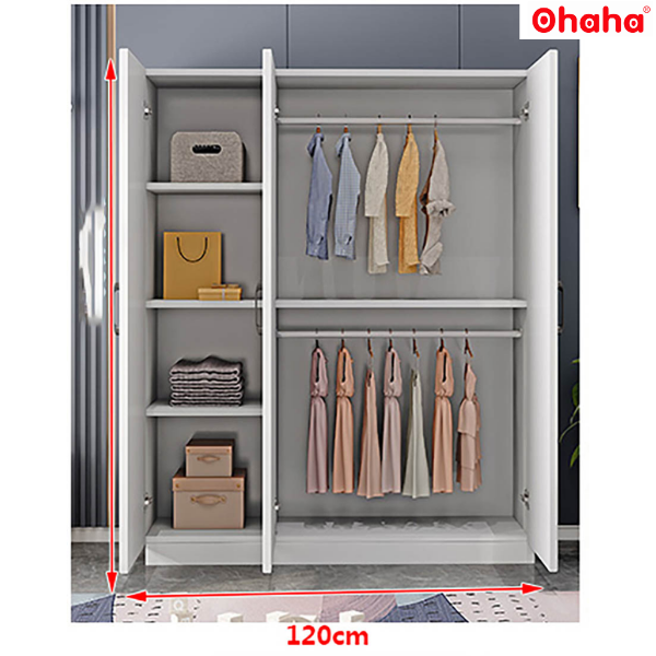 Tủ Quần Áo Gỗ Công Nghiệp Hiện Đại Ohaha - HĐ005 cung cấp không gian lưu trữ rộng rãi, ô ngăn sắp xếp khoa học giúp cho người dùng thoải mái cất trữ đồ đạc, quần áo gọn gàng. Chất liệu gỗ công nghiệp MDF lõi xanh chống ẩm cao cấp, vừa chắc chắn vừa chịu lực tốt. Lớp sơn bền đẹp màu sắc trang nhã tăng tính thẩm mỹ cho không gian phòng ngủ của bạn.