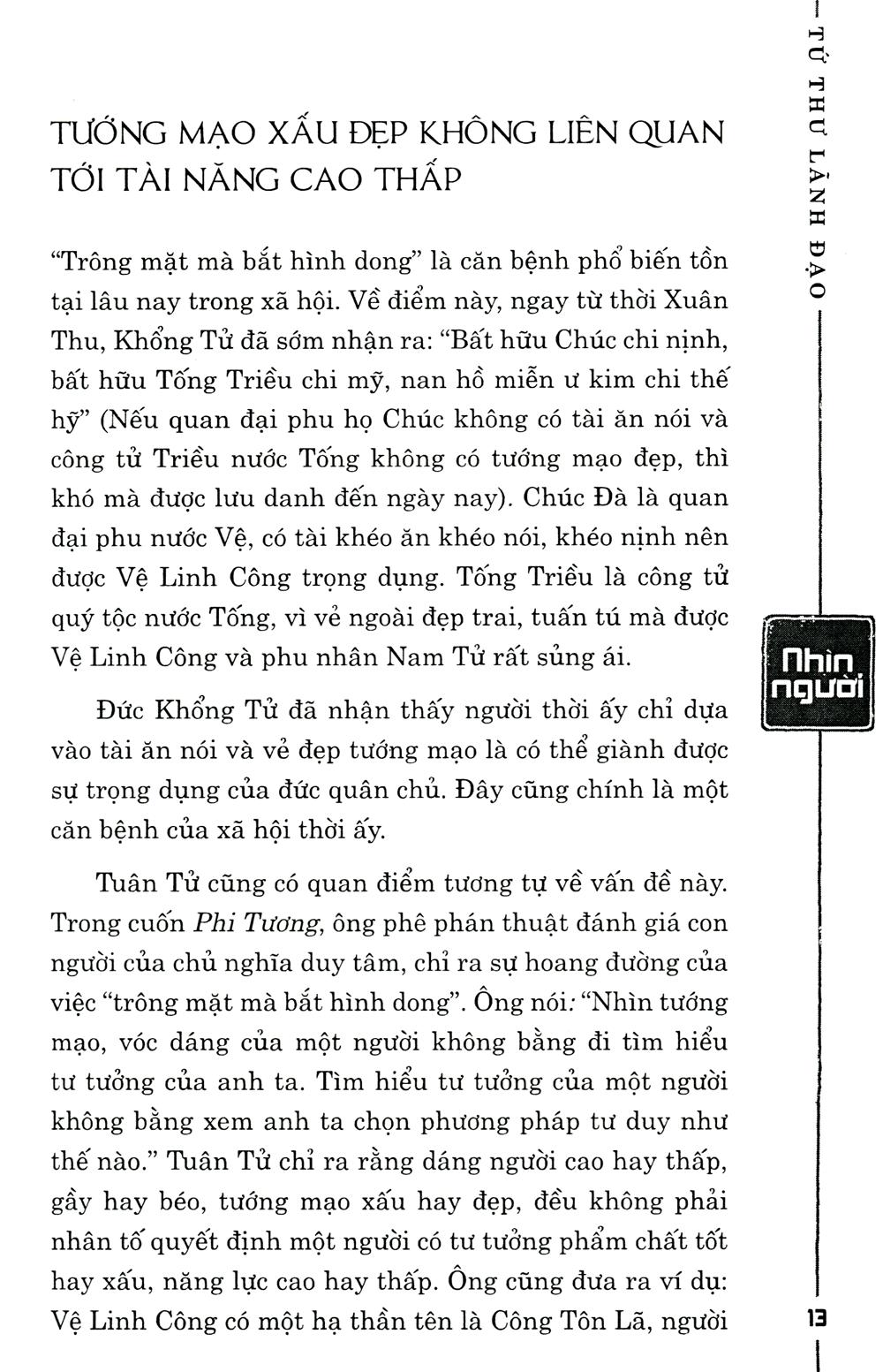 Tứ Thư Lãnh Đạo - Thuật Quản Trị (Tái Bản) ------------ Từ ngàn xưa, người phương Đông luôn quan niệm rằng: người lãnh đạo nhất thiết phải hội tụ “ thuật lãnh đạo, thuật