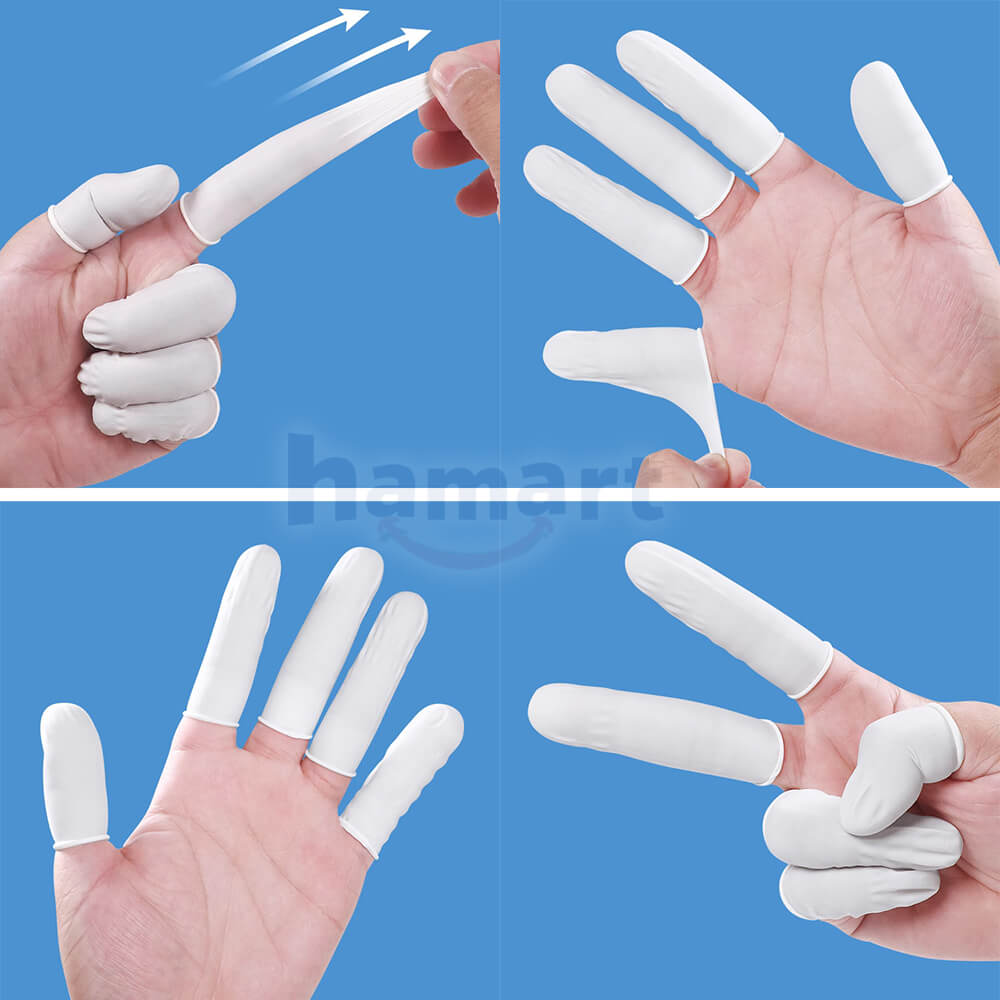 - Sản xuất từ cao su nhân tạo (cao su tổng hợp) với đặc tính siêu co giãn, có thể kéo dài gấp 5 lần kích thước, không bó chặt ngón tay khi đeo, thoải mái & lưu thông máu đầu ngón tay, không dễ rách hay đâm thủng