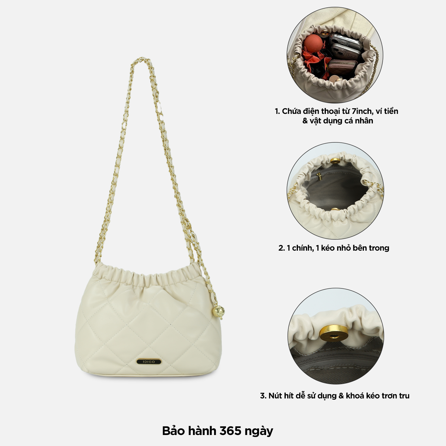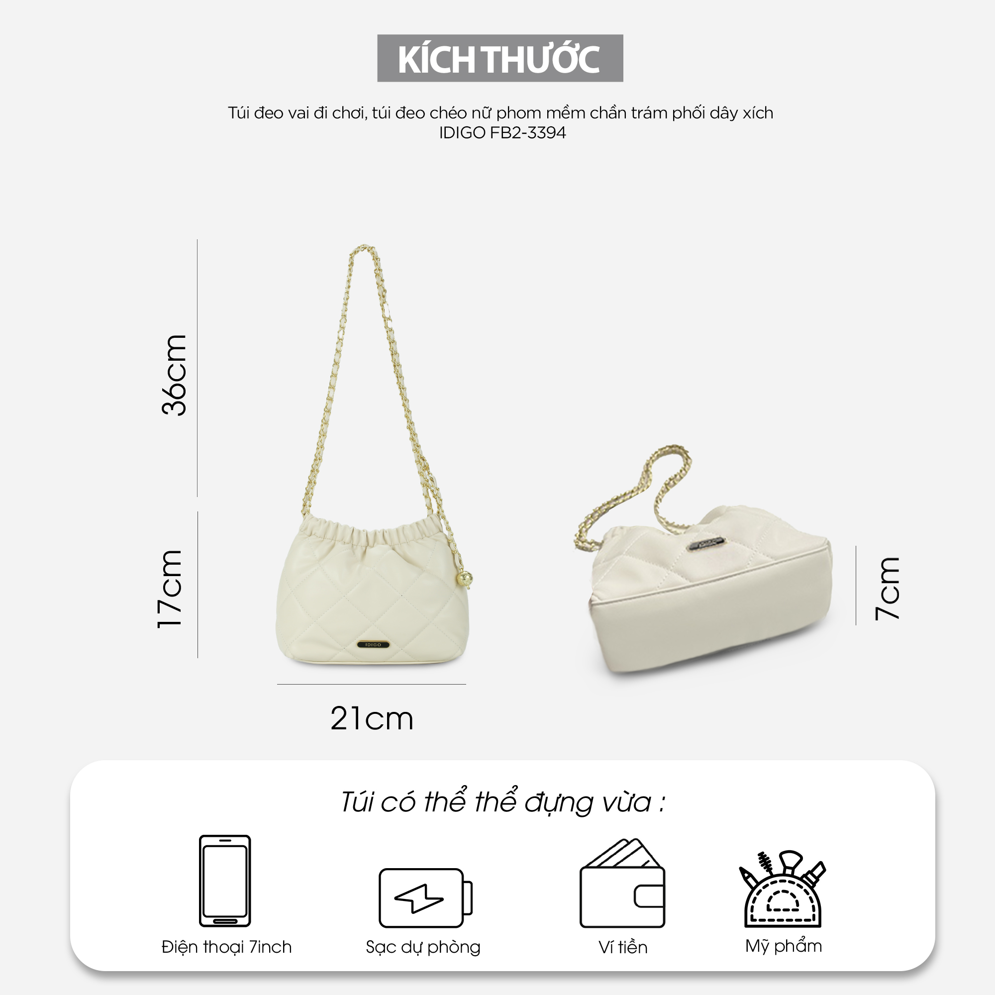 ✨Túi đeo vai đi chơi nữ phom mềm chần trám phối dây xích IDIGO FB2-3394