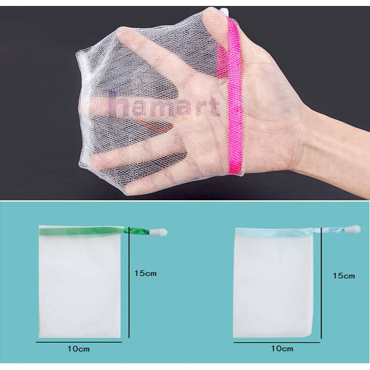 Túi tạo bọt xà phòng - Túi lưới tạo bọt rút dây nút chân không dày dặn 2 lớp 9x15