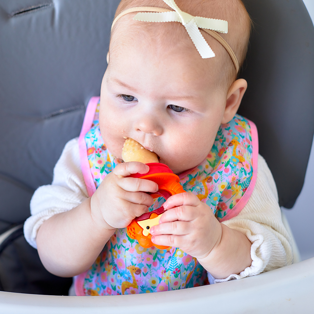 Giúp bé tập ăn dặm, tăng kỹ năng nhai nuốt, kích thích vị giác tận hưởng trọn vị ngon của trái cây hay rau củ thông qua các lỗ của túi lưỡi. Tăng khả năng hoạt động của lưỡi giúp phát triển khả năng ngôn ngữ của trẻ sau này.