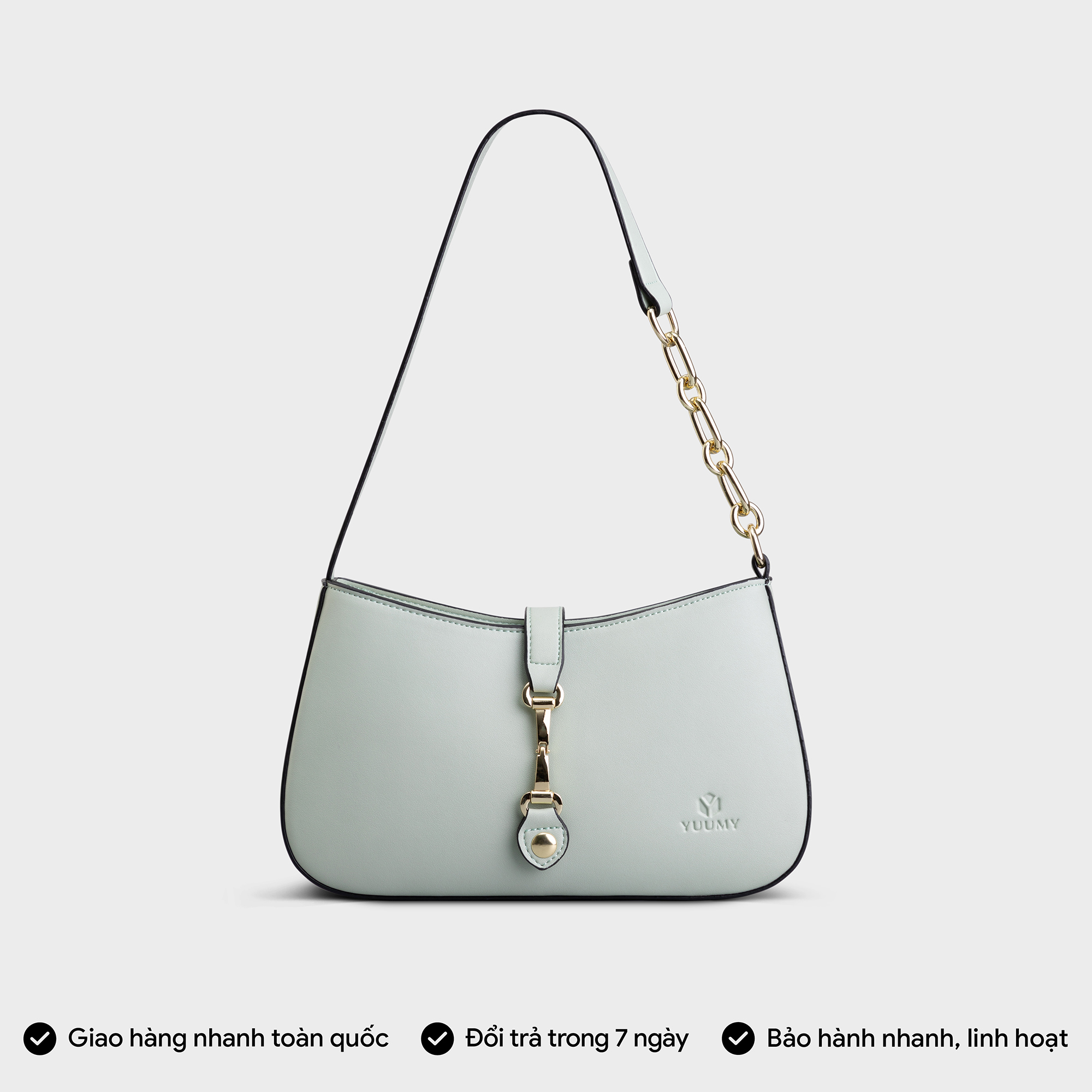 Túi xách đeo vai Yuumy Glossy YN309 dễ dàng đeo vai hoặc xách tay, giữ được sự chỉn chu mà không gây nặng nề. Với kiểu dáng cong mềm mại cùng thiết kế gọn gàng,