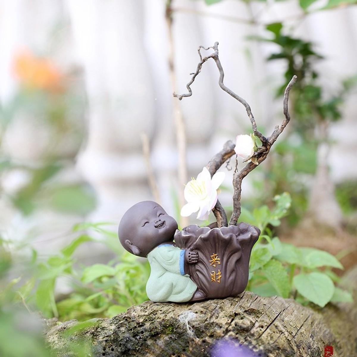 ✨Tượng chú tiểu ôm cải thảo Vạn Sự May Mắn - trồng cây, cắm hoa & trang trí