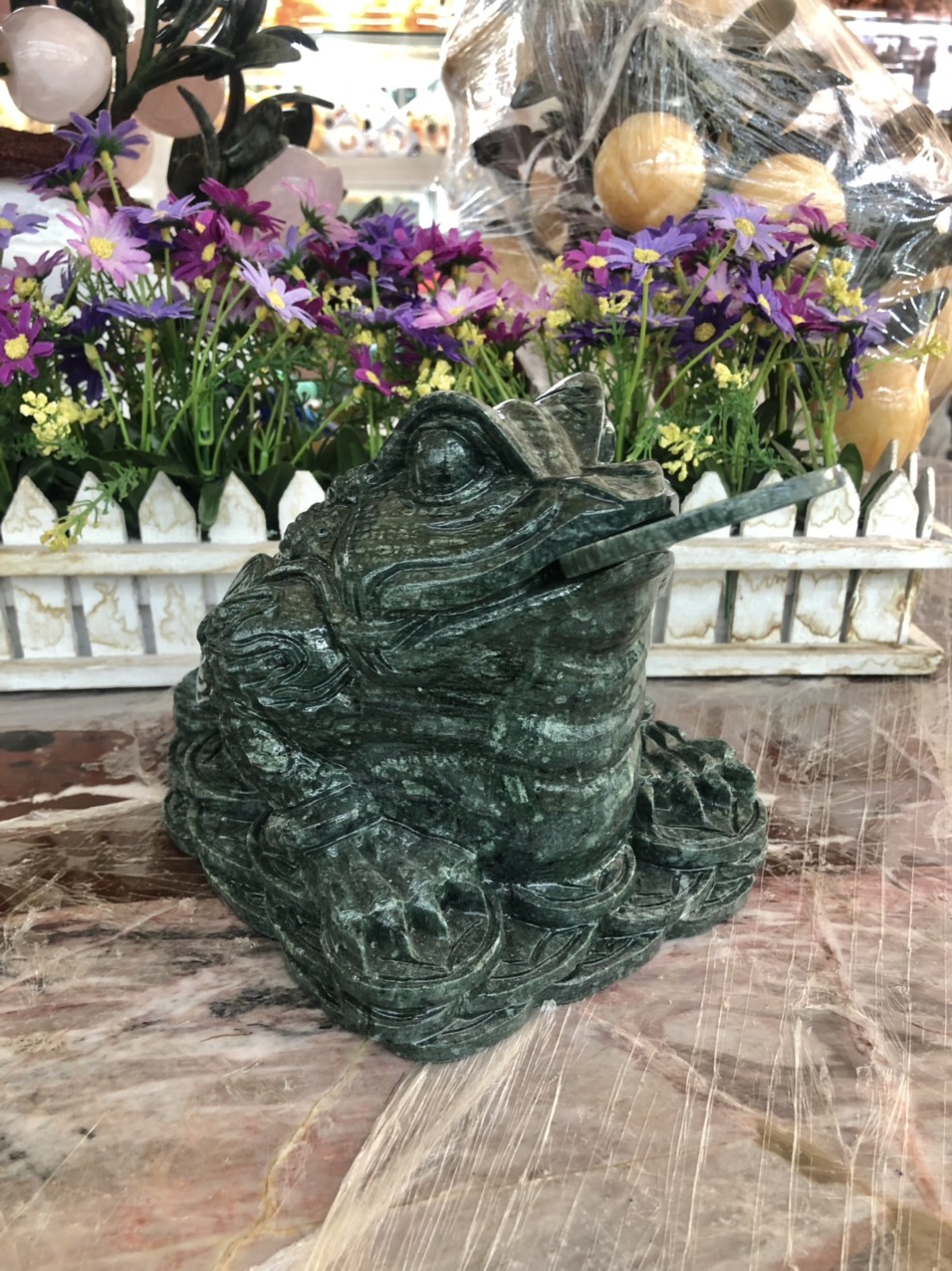 ✨Tượng Cóc Ba Chân, Cóc Ngậm Tiền, Thiềm Thừ phong thủy chiêu tài lộc đá ngọc Ấn Độ - Dài 20 cm