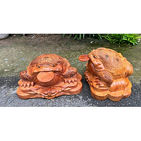 Tượng cóc thiềm thừ tài lộc chiều rộng 30 40cm chất liệu gỗ hương nguyên khối