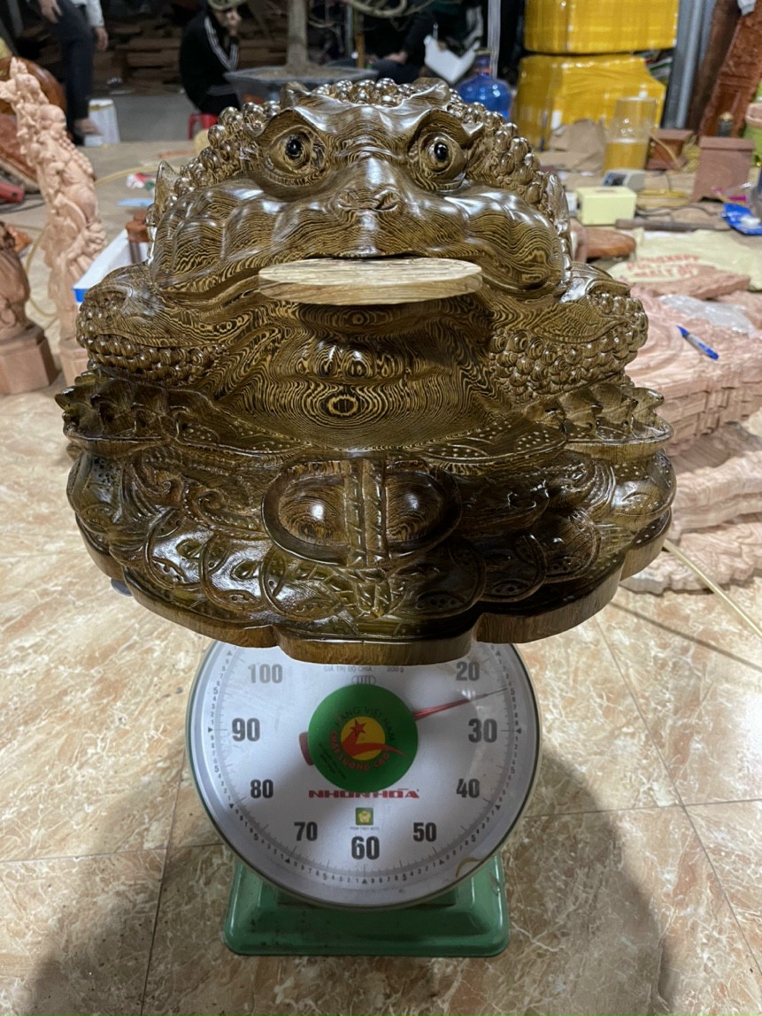 ✨Tượng con cóc phong thủy hút tài lộc bằng gỗ mun đuôi công kt 47×47×40cm