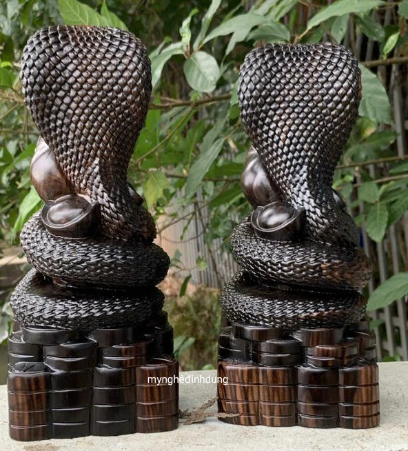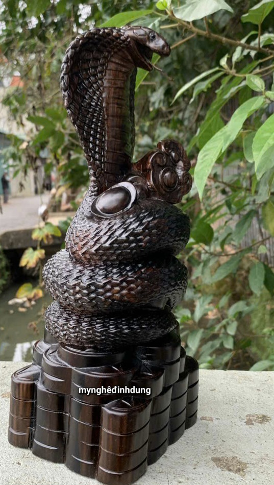 ✨Tượng con rắn phong thủy bằng gỗ mun hoa kt cao 30cm