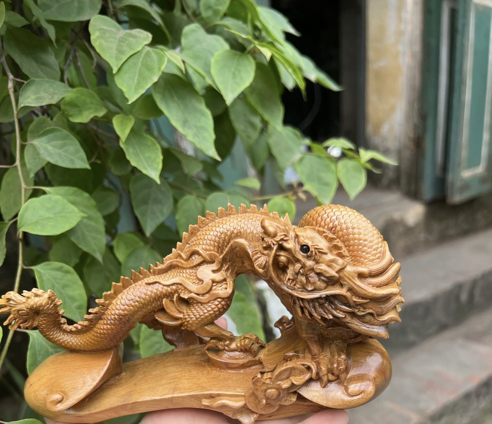✨Tượng con rồng phong thủy bằng gỗ bách xanh thơm nức kt 20×10×7cm