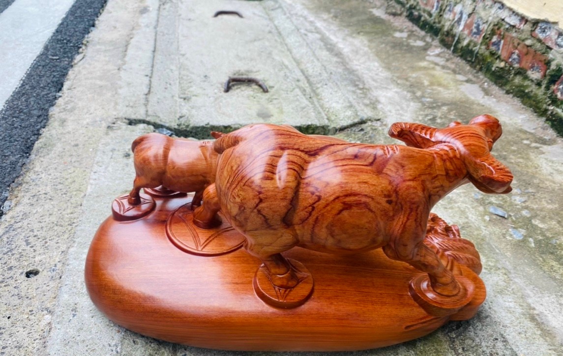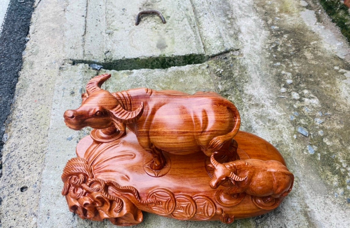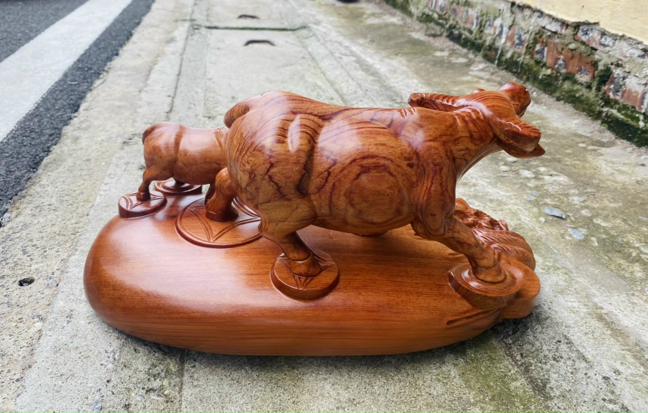 Tượng trâu mẫu tử gỗ hương phong thuỷ