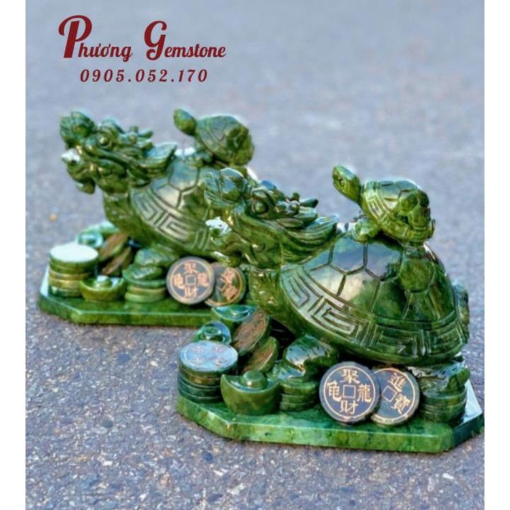 ✨Tượng Cụ Long Quy ( Rùa Đầu Rồng ) Cõng Rùa Con - Đá ngọc Serpentine - Dài 22 cm