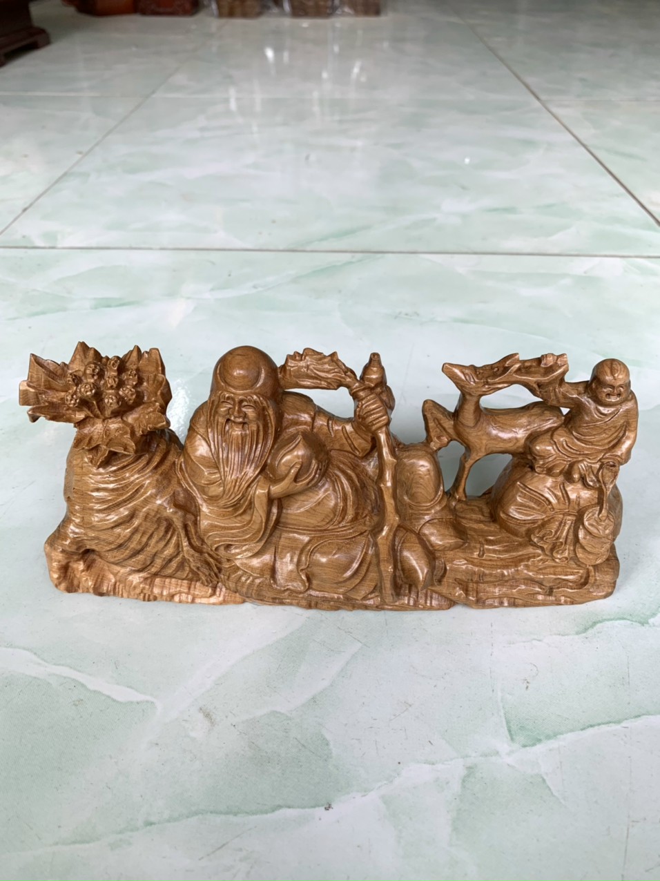 ✨Tượng Cụ thọ hươu củ sâm bằng gỗ bách xanh thơm nức kt 20×9×5cm