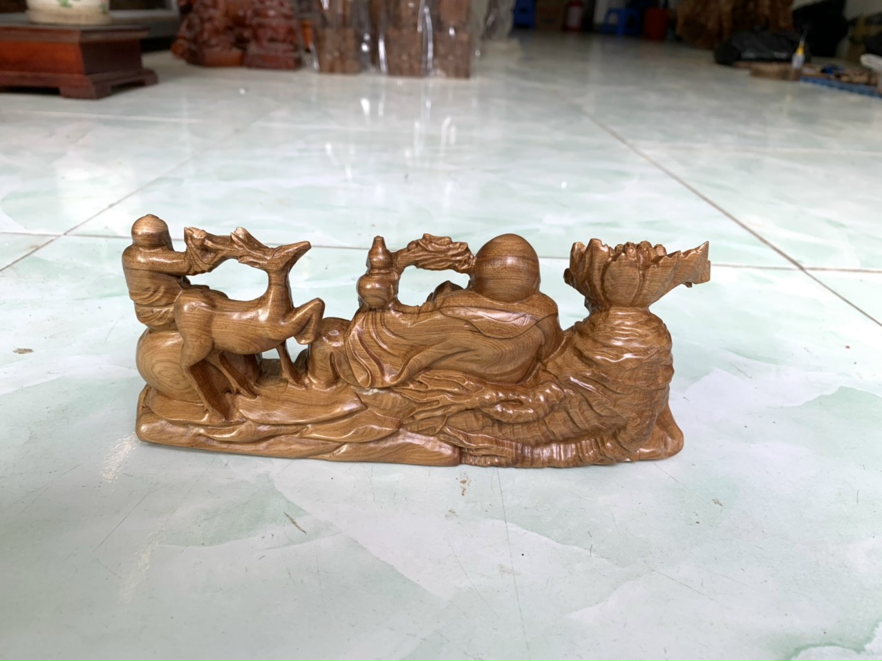 _ Tượng tùy duyên đụoc làm bằng chất liệu gỗ bách xanh liền khối tự nhiên 100% _ kt cao 15x6x5cm _ Tượng được chạm khắc gọt tỉa vô cùng ti mỉ tinh xảo kỳ
