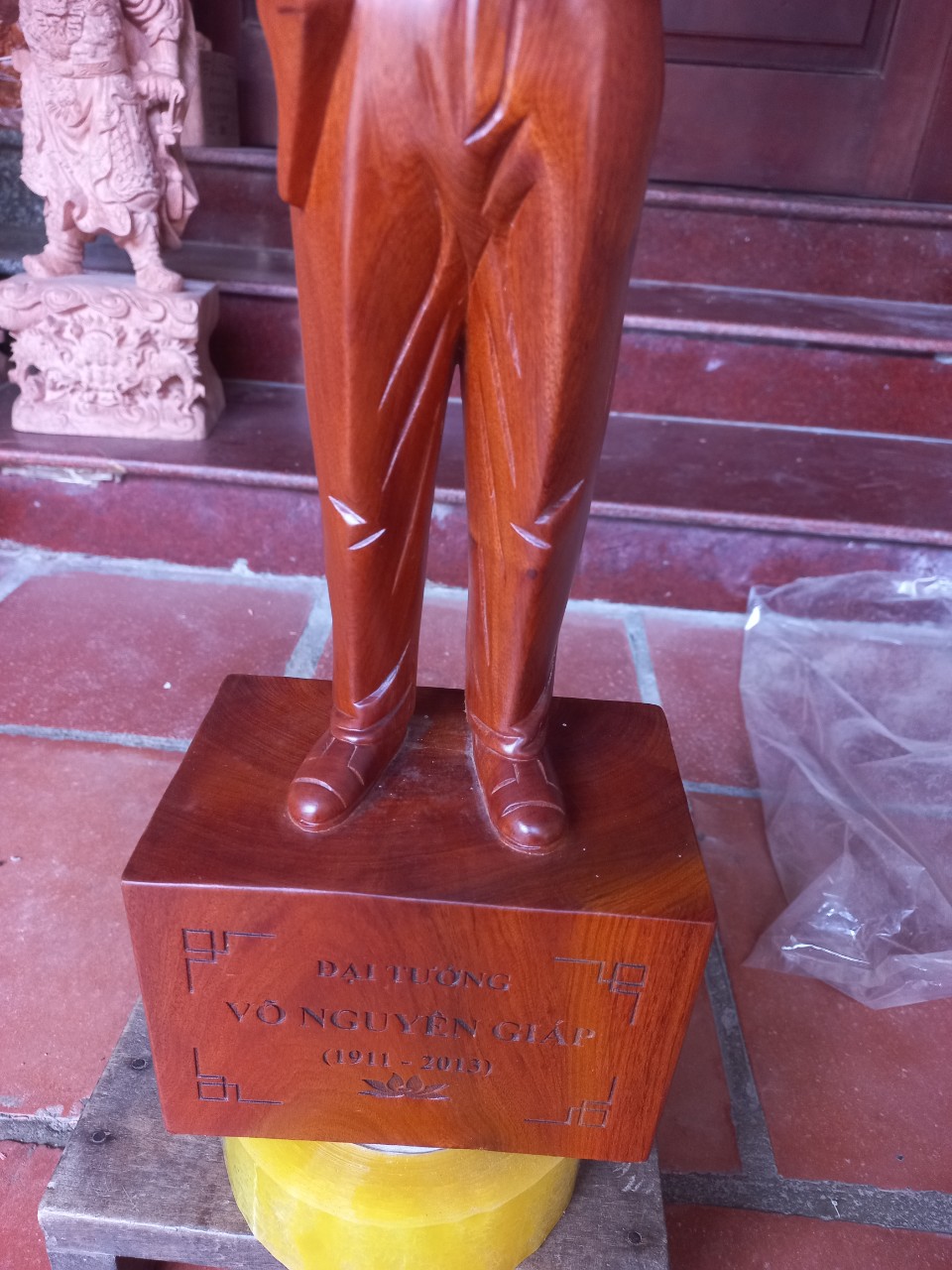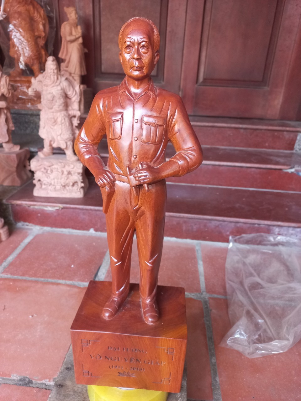 _ Tượng đại tướng võ nguyên giáp được làm bằng chất liệu gỗ hương đá tự nhiên 100% _ Kích thước cao 50×17×10cm _ Tượng đại tướng võ nguyên giáp được làm và hoàn thiện