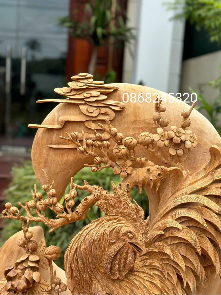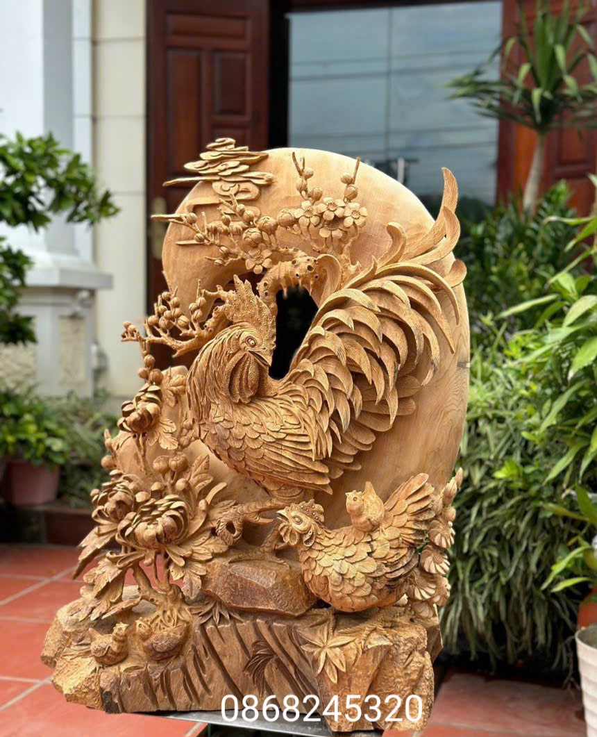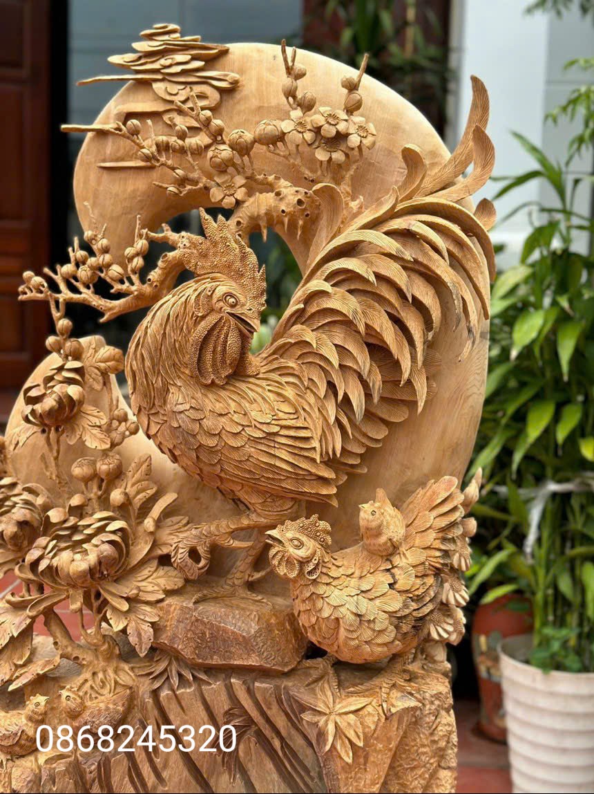 ✨Tượng gia đình gà phong thủy bằng gỗ ngọc am kt 86×66×37cm