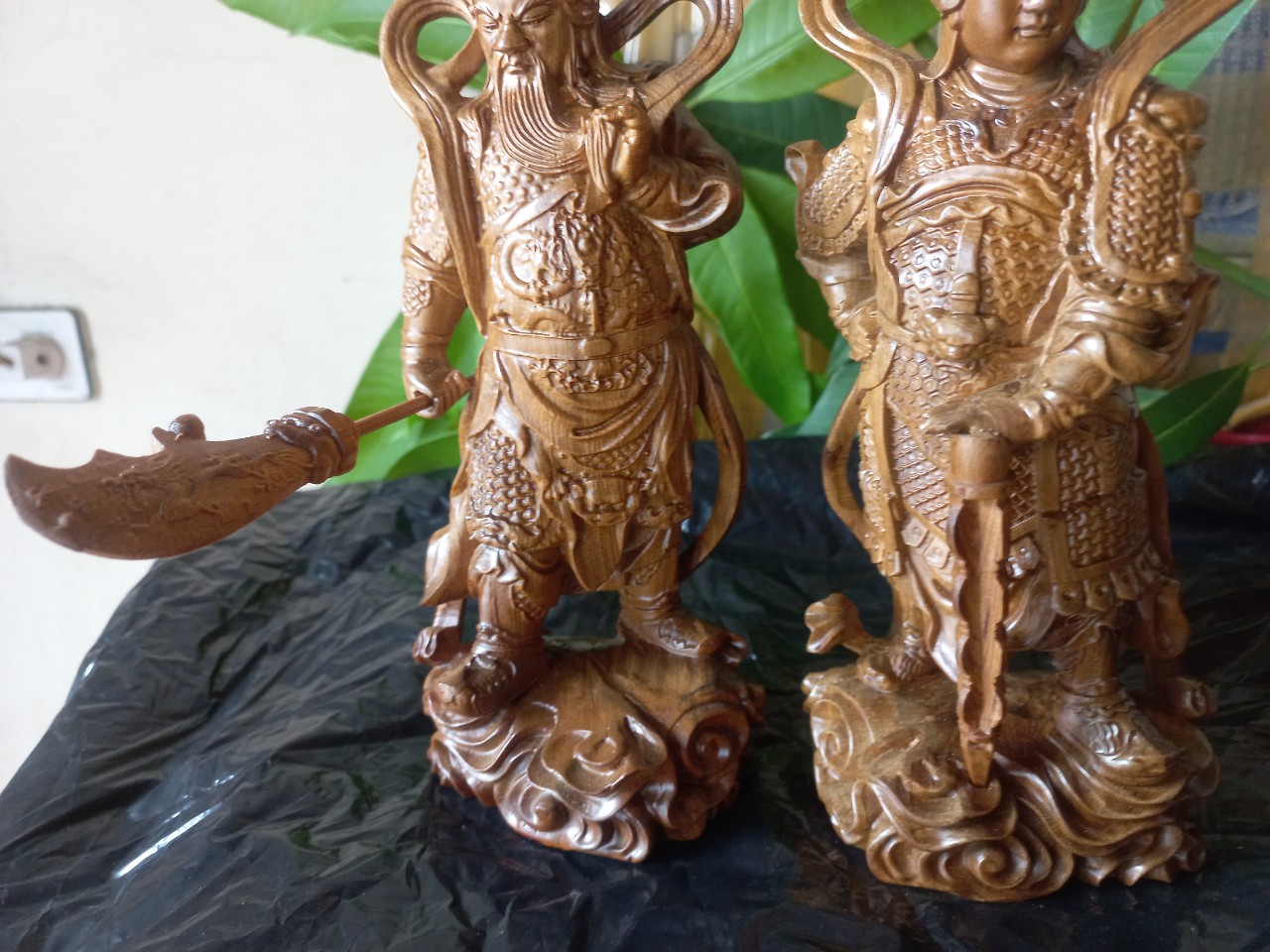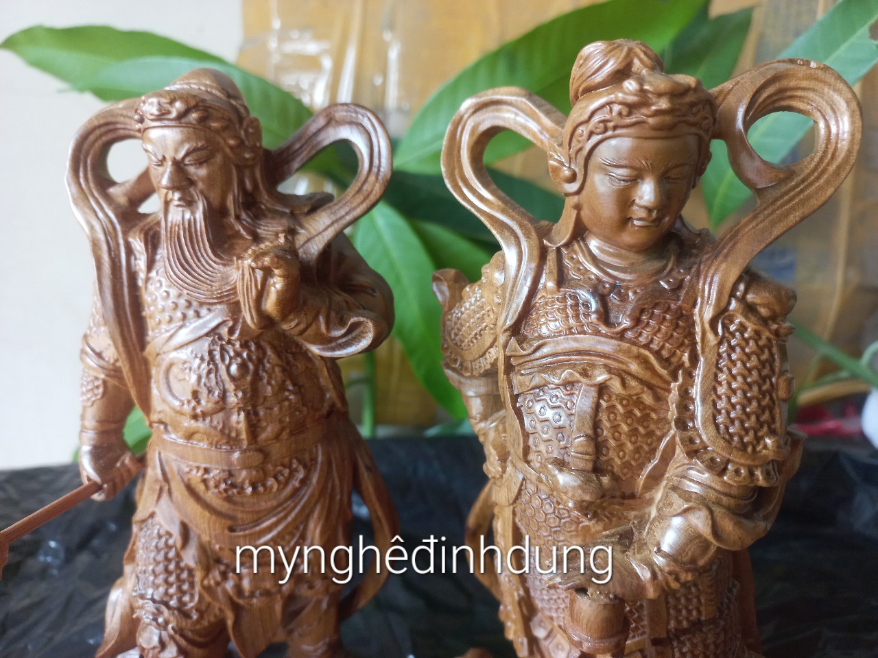 ✨Tượng hai vị hộ phát _ Vi đà tôn thiên và quan công bằng gỗ bách xanh thơm nức kt cao 20x9x7cm