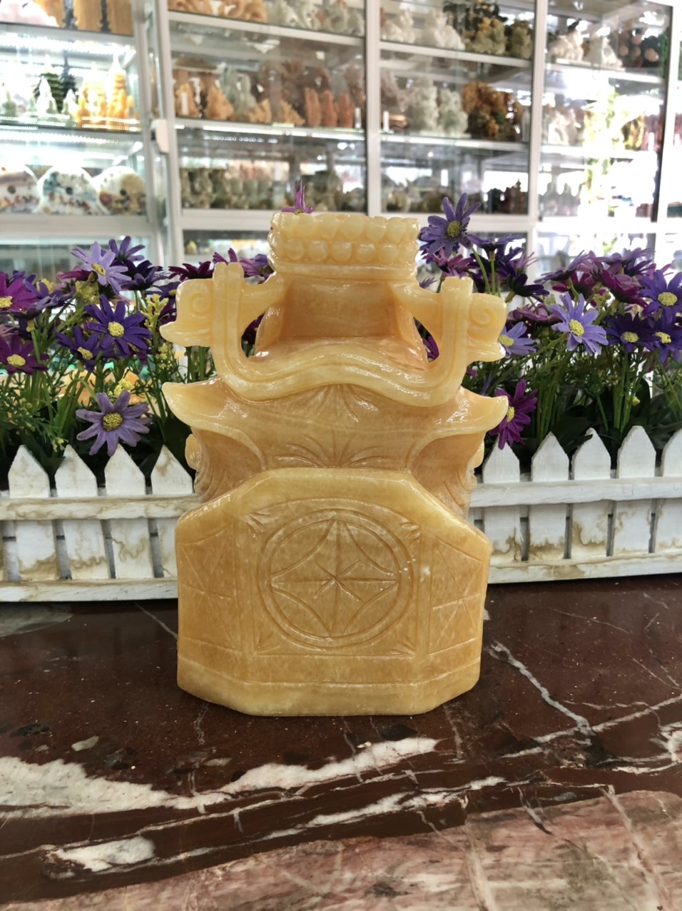 Chất liệu: Đá ngọc hoàng long Kích thước: Dài 13,5 cm x Rộng 9cm x Cao 20cm Khối lượng: 7,2 kg