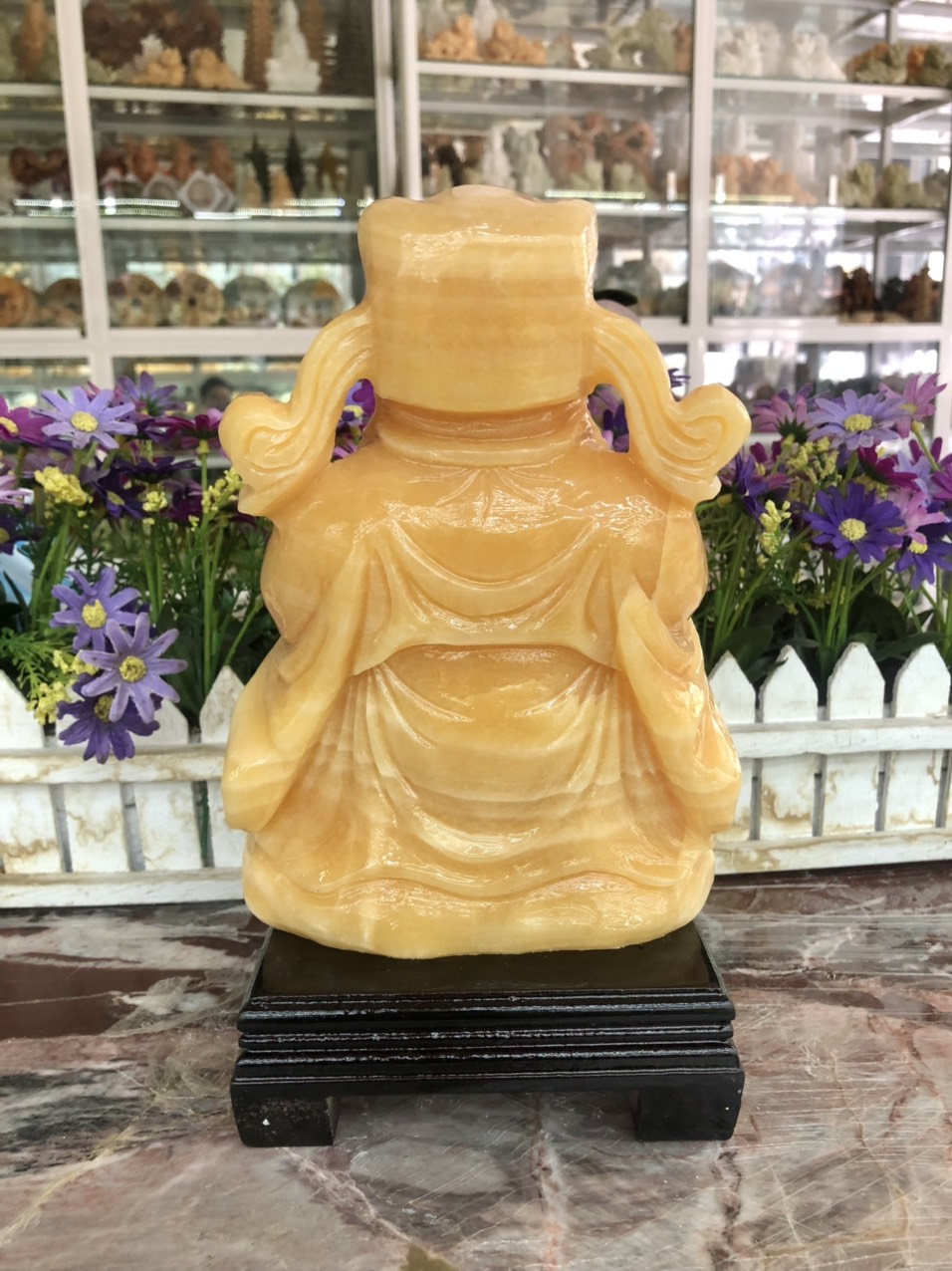 Tượng Phật Quan Âm Đá Lưu Ly Vàng Mới để trong xe hơi hoặc để bàn cao 12cm đk 7cm đế 5cm Mệnh Kim mệnh Thổ mệnh Thủy ạ *** Tượng Phật Quan Âm Đá