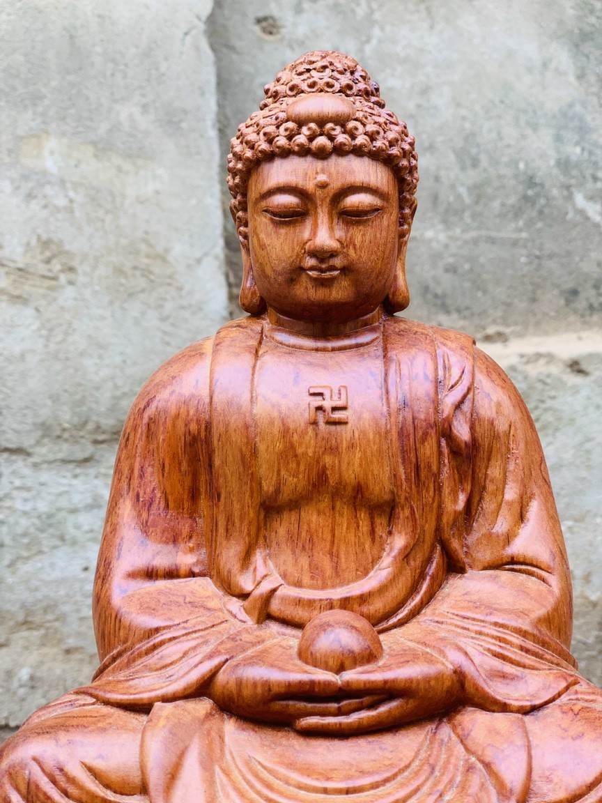 ✨Tượng phật adi đà được làm bằng chất liệu gỗ hương đá kt cao 50×25×25cm