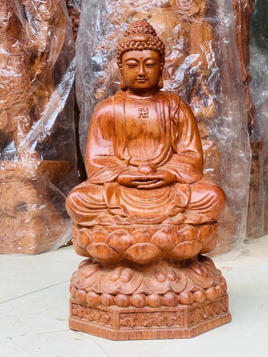 Tượng phật a di đà cao 40cm chất liệu gỗ hương đá