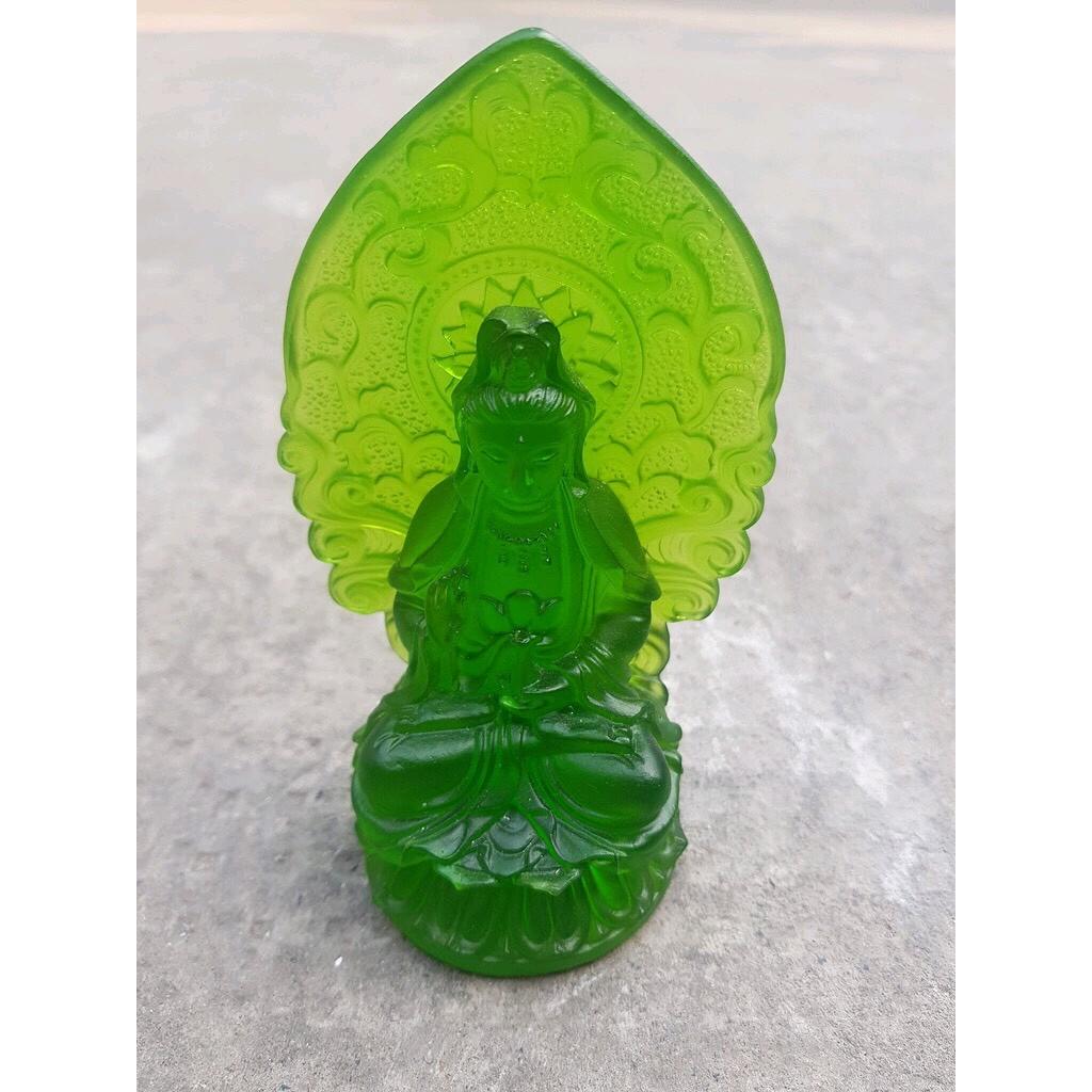 TƯỢNG PHẬT BÀ QUAN ÂM MỚI ĐÁ LƯU LY XANH LÁ TƯƠI ĐẸP ĐỂ TRONG XE HƠI hoặc BÀN C12cm đk7cm đế 5cm