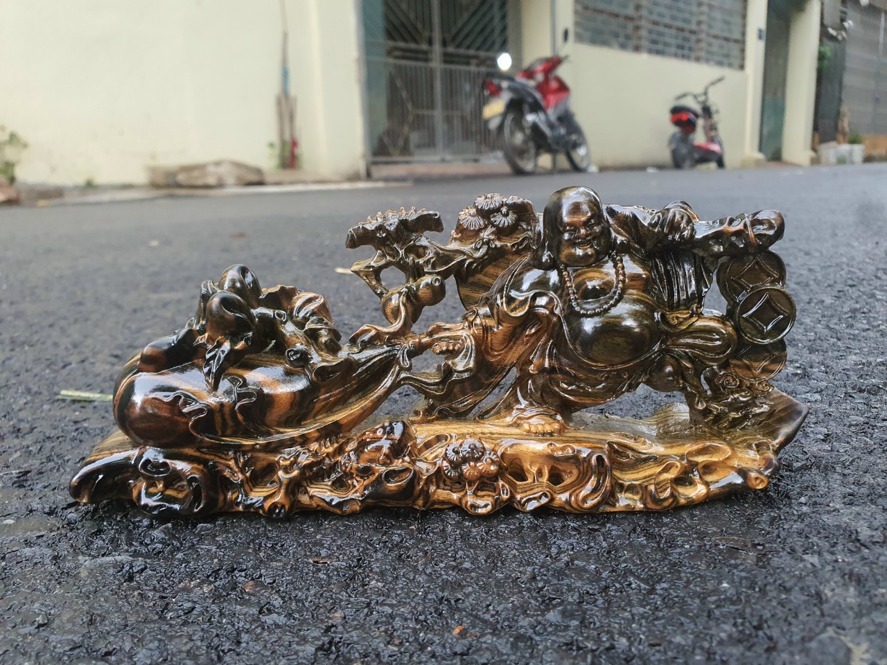 Mua tại TiktokTượng phật di lặc kéo bao tiền được làm bằng chất liệu gỗ mun hoa liền khối tự nhiên 100% Kt 20×8×6cm _ Tượng phật di lặc kéo bao tiền được trạm khắc vô cùng tỉ mỉ ,tinh sảo kỳ công .Đi hầu hết tất cả mọi chi tiết góc ngách nội dung hoa văn của tượng đều được gọt tỉa chỉnh sửa hoàn toàn bằng tay thủ công .Đồng thời tượng được kiểm định kỹ lưỡng ,khắt khe ,như cho vào thẩm sấy cho gỗ khô kiệt .Mục đích trống dập nứt vênh mo mối mọt ,kết hợp với trà nhám ,đánh giấy giáp nhiều nước ,sờ mát lạnh .Rồi cho vào phun lót làm ,bóng mờ để giữ lại mầu sắc vân gỗ tự nhiên ,Tượng được làm vả hoàn thiện do bàn tay khối óc tài hoa .Từ những người thợ giàu kinh nghiệm ,Cũng như tay nghề cao trong làng nghề truyền thống
