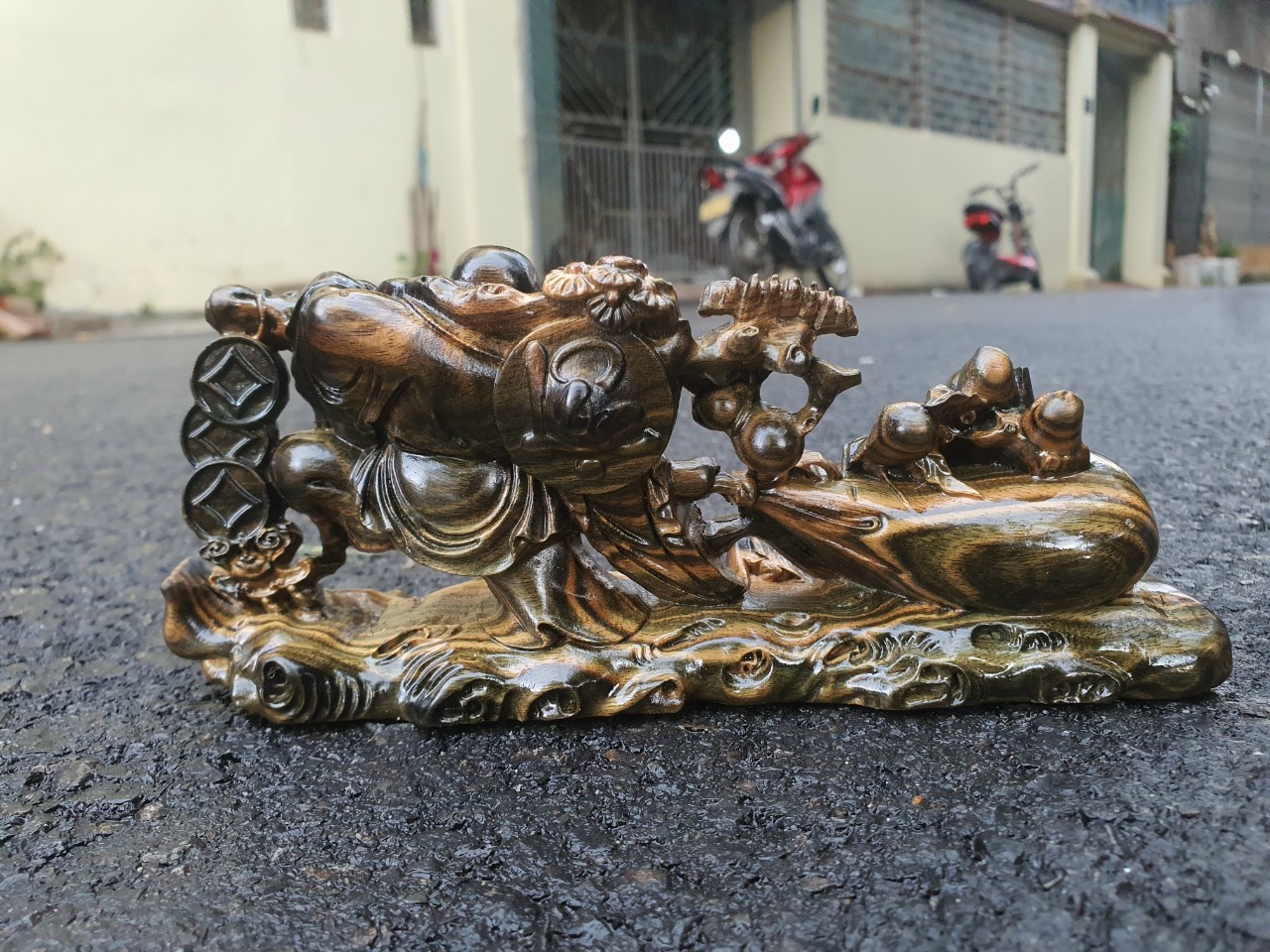 ✨Tượng phật di lặc kéo bào tiền mini bằng gỗ mun hoa tuyệt đẹp kt 20×8×6cm