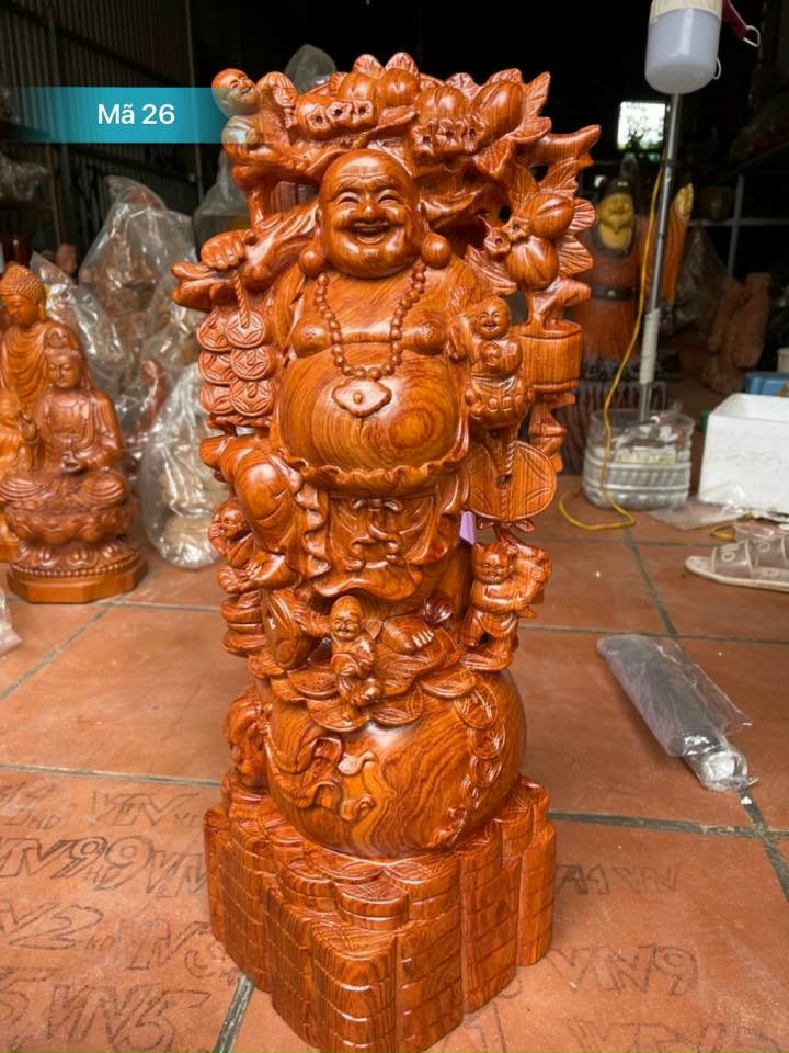 Mua tại TiktokTượng phật di lặc ngũ phúc được làm bằng chất liệu gỗ hương đá tự nhiên 100% Kích thước 60×26×15cm _ Tượng phật di lặc ngũ phúc được trạm khắc tỉ mỉ tinh sảo kỳ công ,Đi hầu hết mọi chi tiết góc ngách nội dung hoa văn của tượng ,Đều được ngọt tỉa ,Chỉnh sửa hoàn toàn bằng tay thủ công .Từ những người thợ dầy rặn kinh nghiệm ,Cũng như tay nghề cao trong làng nghề truyền thống .Chính vì thế tượng phật di lặc ngũ phúc đã đáp ứng đầy đủ những tiêu trí ( Đẹp bền rẻ ) Thẩm mỹ nghệ thuật với chất lượng tuyệt vời