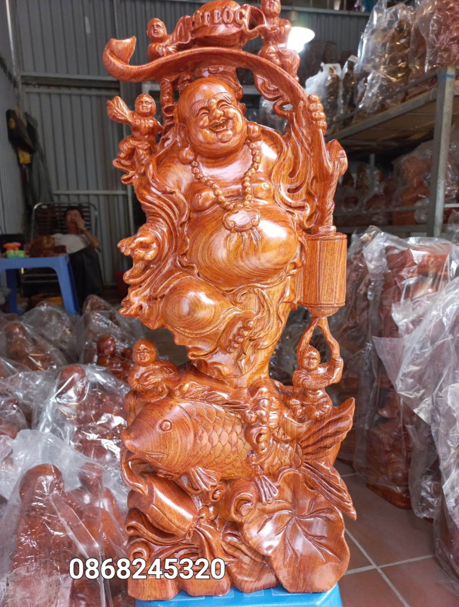 Tượng Phật Di Lặc gỗ hương đá KT 600x350 đang trưng bày tại Đồ gỗ mỹ nghệ cao cấp Đồng Kỵ