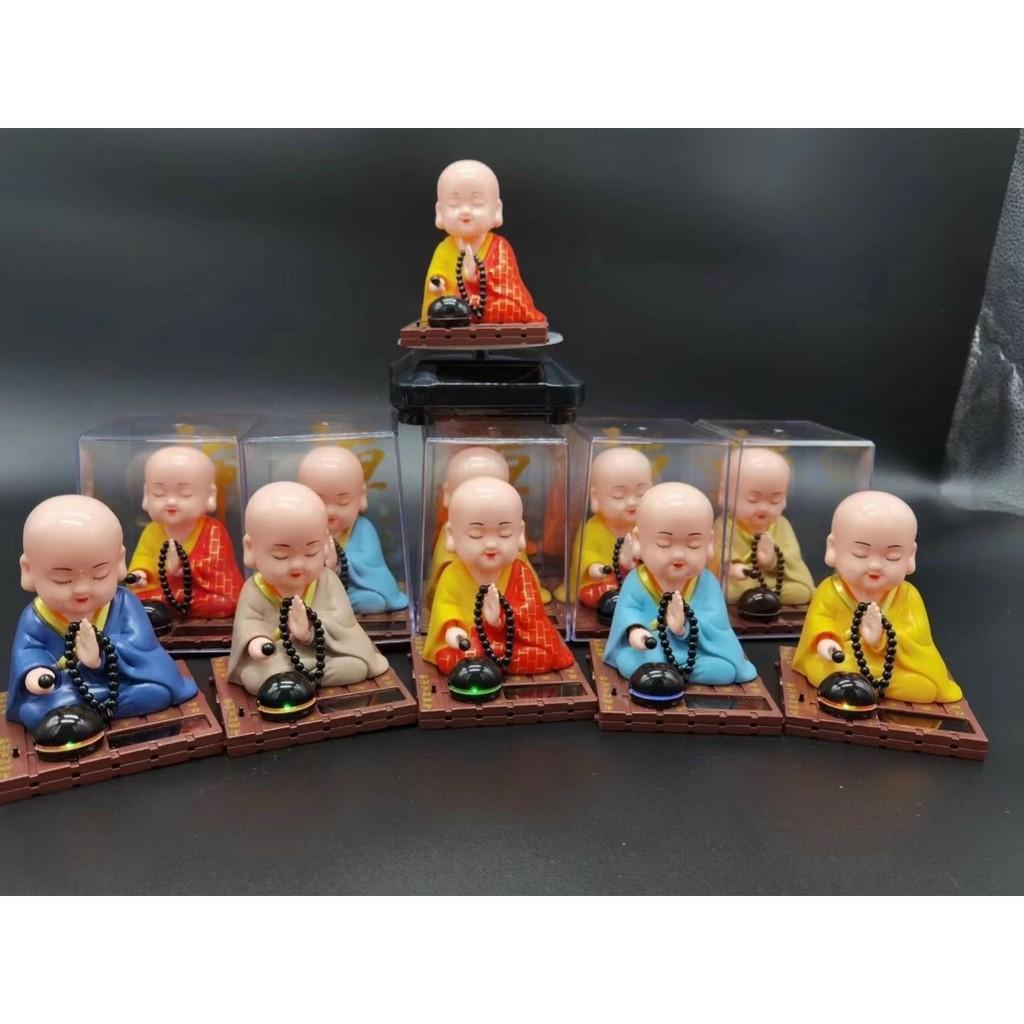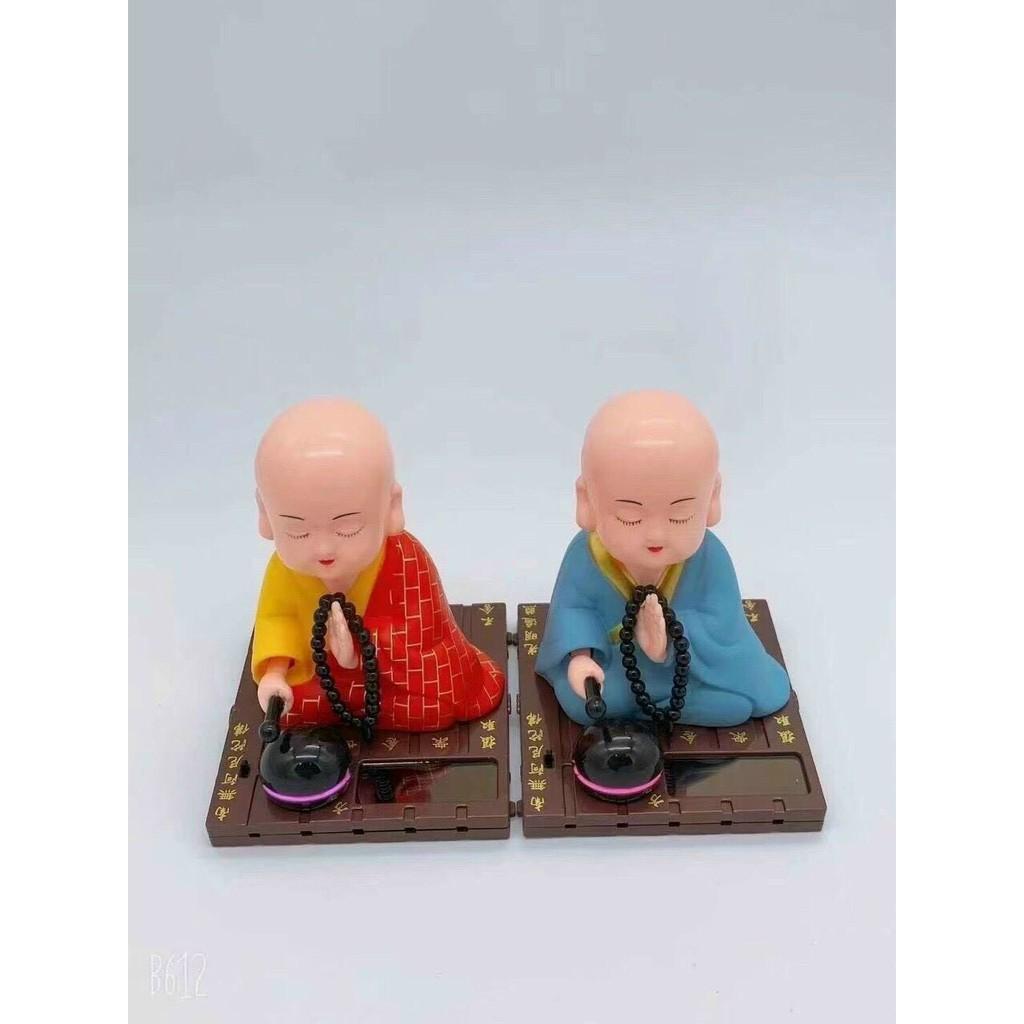 Tượng Chú Tiểu Gõ Mõ Tụng Kinh, Thầy Chùa Gõ Mõ Trang Trí Ô Tô Xe Hơi Năng Lượng Mặt Trời