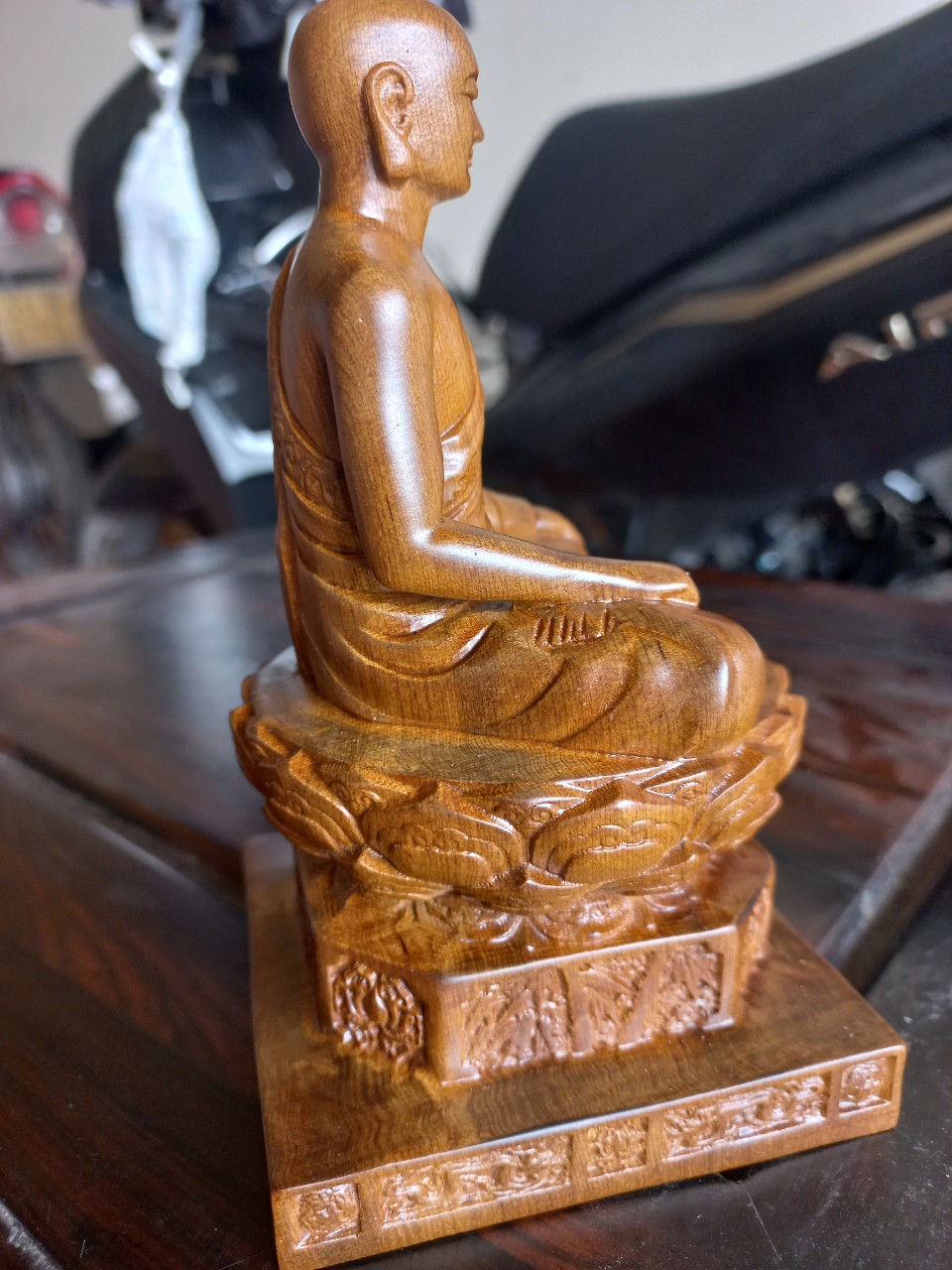 ✨Tượng phật hoàng trần nhân tông bằng gỗ bách xanh thơm nức kt cao 15×8.5cm