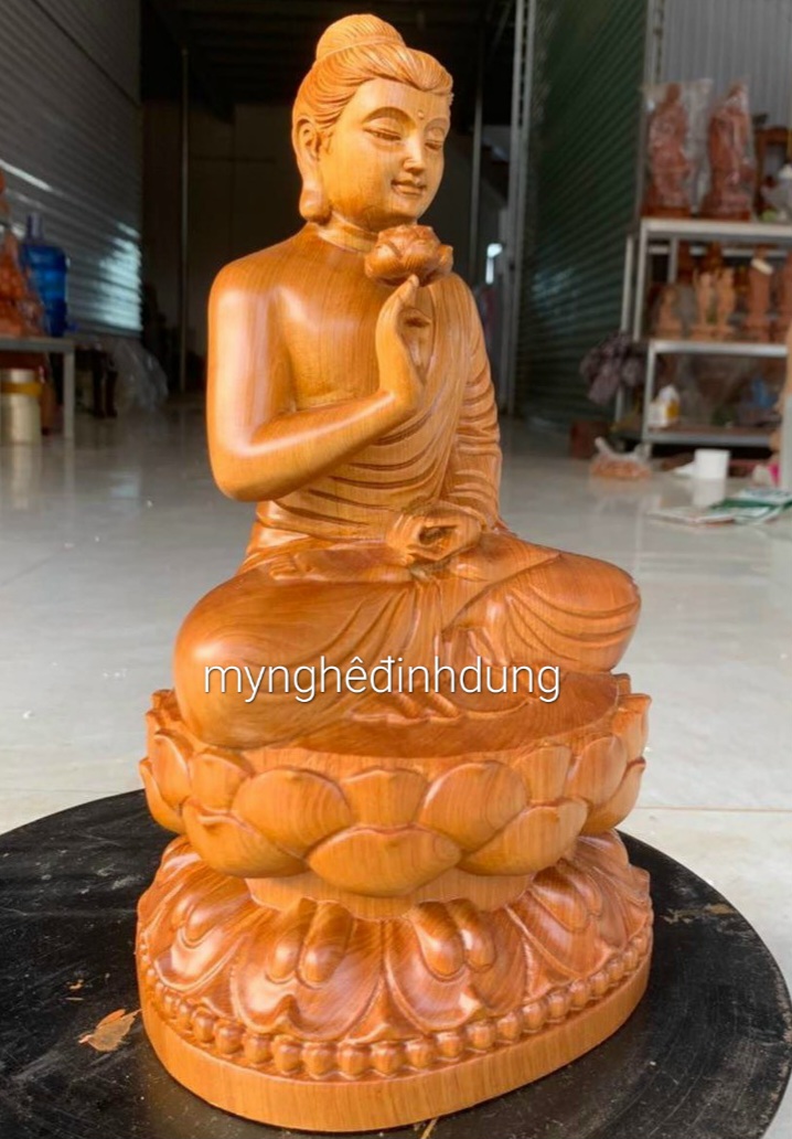 ✨Tượng phật liên hoa bằng gỗ bách xanh liền khối thơm nức kt cao 30×17×14cm