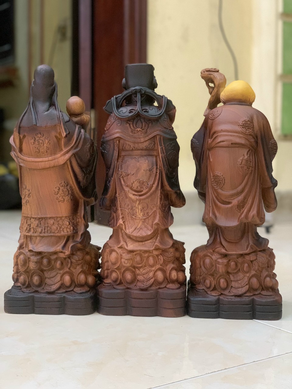 ✨Tượng phật tam đa phúc lộc thọ bằng gỗ hương đá tô làm mầu giả cổ kt 40×15×13cm