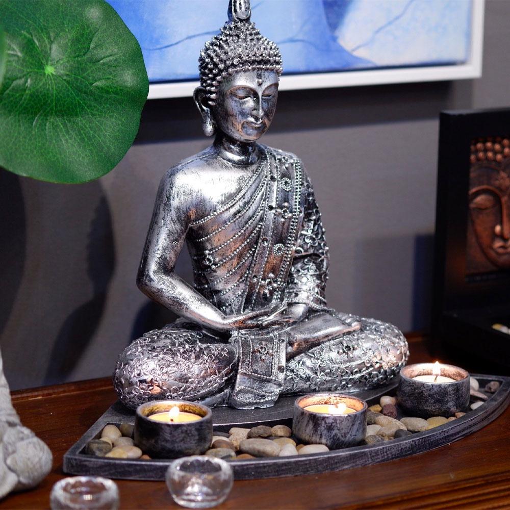 ✨Tượng phật thiền định kèm đế nến tặng 10 cốc nến bơ - Mani Decor
