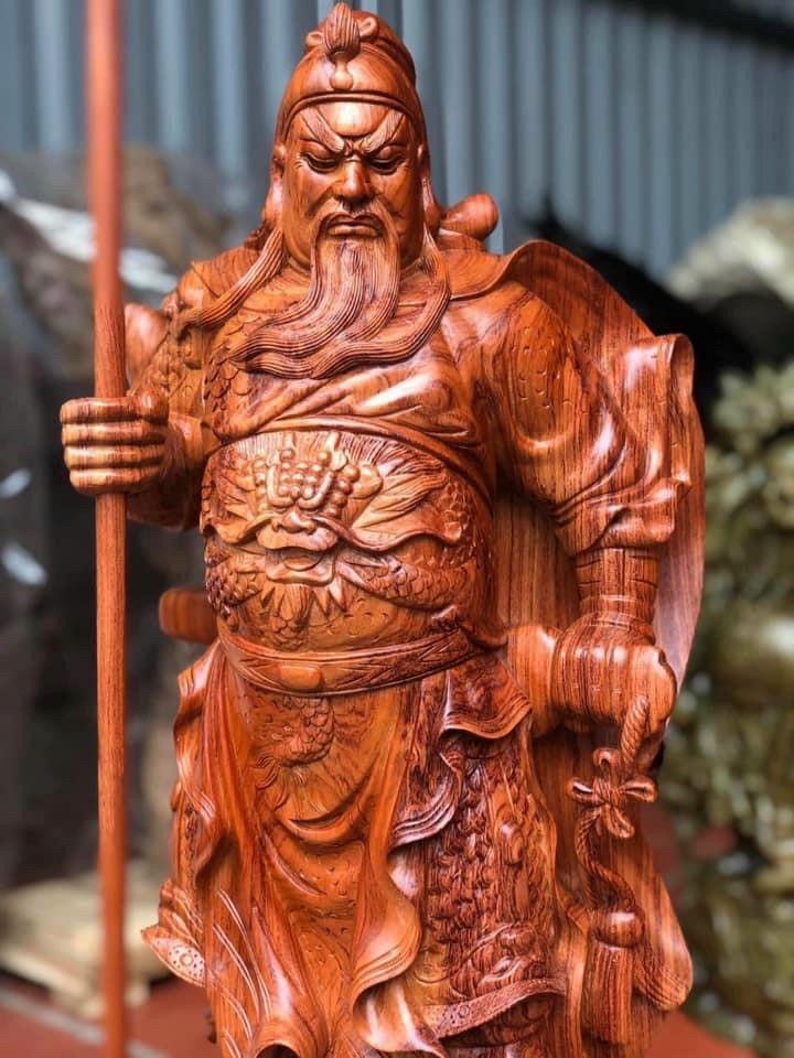 Tượng Quan Công đứng cầm đao cao 80cm | Quan Thánh gỗ hương đứng trấn ải