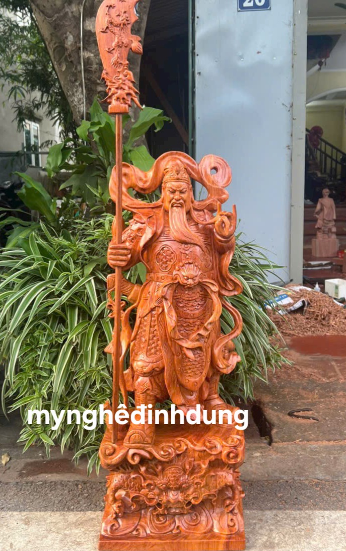 Tượng Quan Công đứng cầm đao cao 80cm | Quan Thánh gỗ hương đứng trấn ải