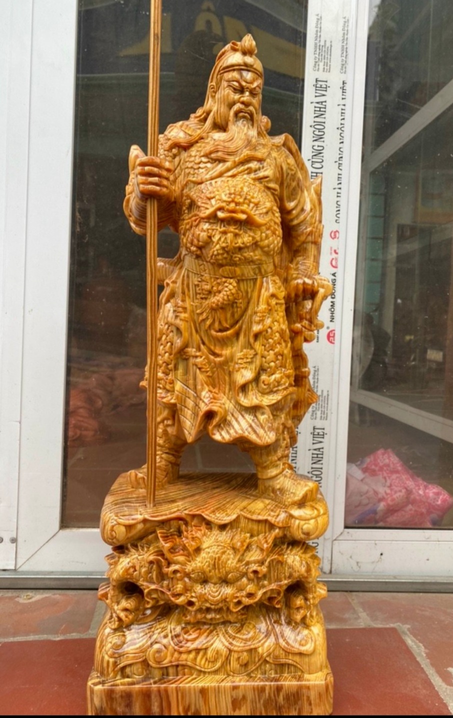 Mua tại TiktokTượng quan công trấn ái được làm bằng chất liệu gỗ huyết long mọng dầu tự nhiên 100% Kt 60×23×14cm _ Tượng điêu khắc trạm trổ vô cùng tỉ mỉ ,tinh sảo kỳ công .Đi hầu hết tất cả mọi chi tiết góc ngách nội dung hoa văn của tượng đều được gọt tỉa chỉnh sữa sắc nét hoàn toàn băng tay thủ công .Tượng được làm và hoàn thiện do bàn tay khối óc tài hoa .Từ những người thợ dầy dặn kinh nghiệm ,cũng như tay nghề cao trong làng nghề truyền thống .Chính vì thế tượng quan công bằng gỗ hương đã đáp ứng đầy đủ mọi tiêu trí cần thiết như ( Đẹp bền rẻ ) Thẩm mỹ nghệ thuật với chất lượng tuyệt vời