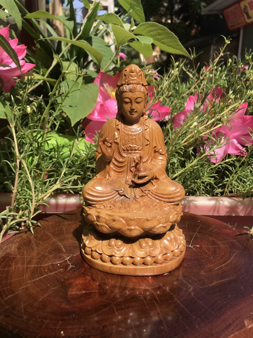 _ Tượng mẹ quan âm bồ tát được làm bằng chất liệu gỗ bách xanh liền khối tự nhiên 100% _ kt cao 15x9x9cm  _ Tượng được chạm khắc gọt tỉa vô cùng tỉ mỉ