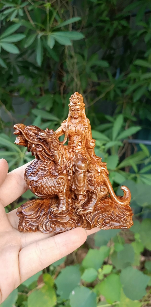 ✨Tượng văn thù phổ hiền bồ tát bằng gỗ bách xanh thơm nức kt 16×15×6cm