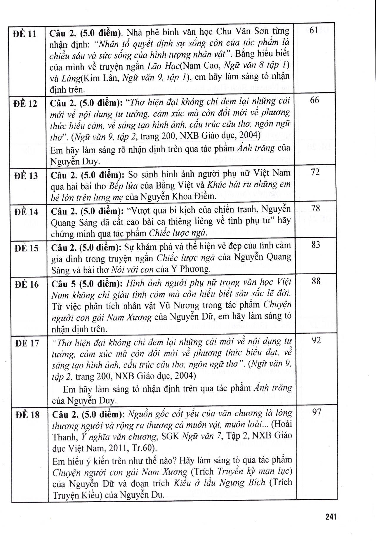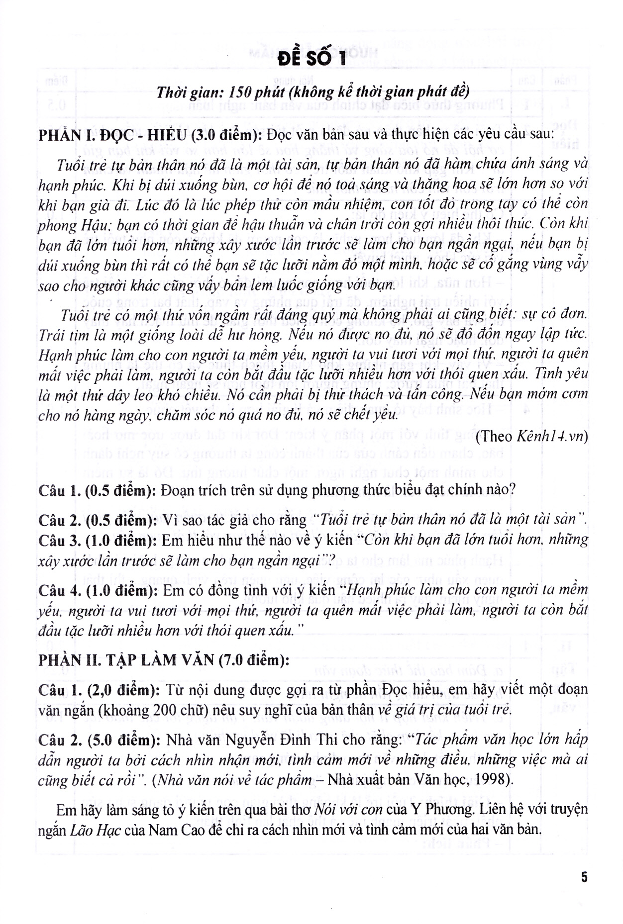 Bố cục sách gồm 45 đề thi và hướng dẫn chấm - theo cấu trúc mới của Bộ giáo dục và đào tạo. Các ngữ liệu của đề thi được lấy trong hoặc ngoài chương trình sách giáo khoa giúp thầy cô và các em được tiếp cận nhiều với những vấn đề thực tiễn.