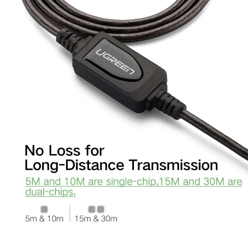Giới Thiệu Cáp USB nối dài 20m có chíp khuếch đại chính hãng Ugreen UG-10324