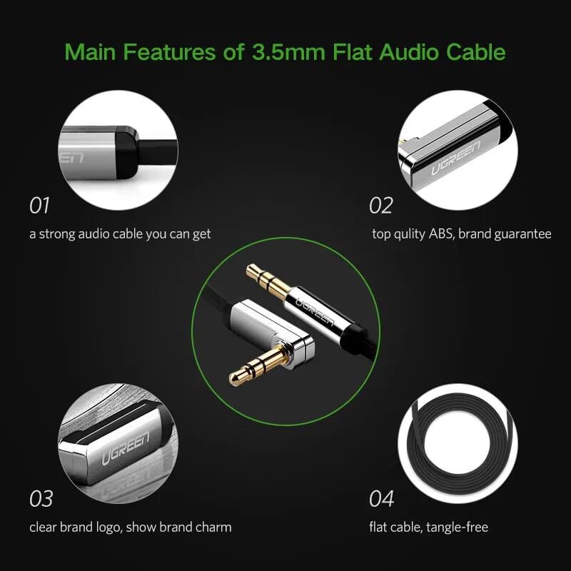 Mua tại TiktokUgreen 10599 3.5Mm Male To 3.5Mm Male Right Angle Flat Cable Gold Plated 2M AV119