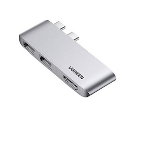 Ugreen 20010919 5 trong 1 màu xám Bộ chuyển type c To 2 * USB 3.0 A + HDMI + RJ45 + PD Converter CM418 10010919