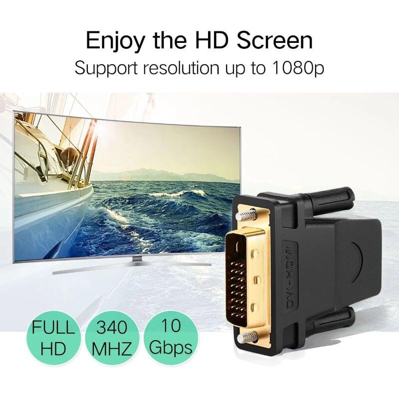 Mua tại TiktokUgreen 20124 DVI 24+1 Male To HDMI 1080P Female Adapter Gold Connect Converter