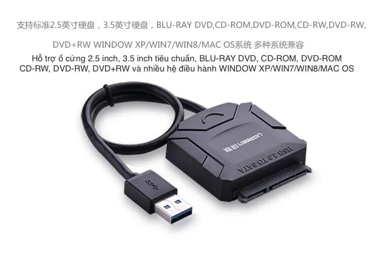 ✨Ugreen UG20231CR108TK 25CM màu Đen Bộ chuyển đổi USB 3.0 sang SATA ổ cứng hỗ trợ nguồn - HÀNG CHÍNH HÃNG