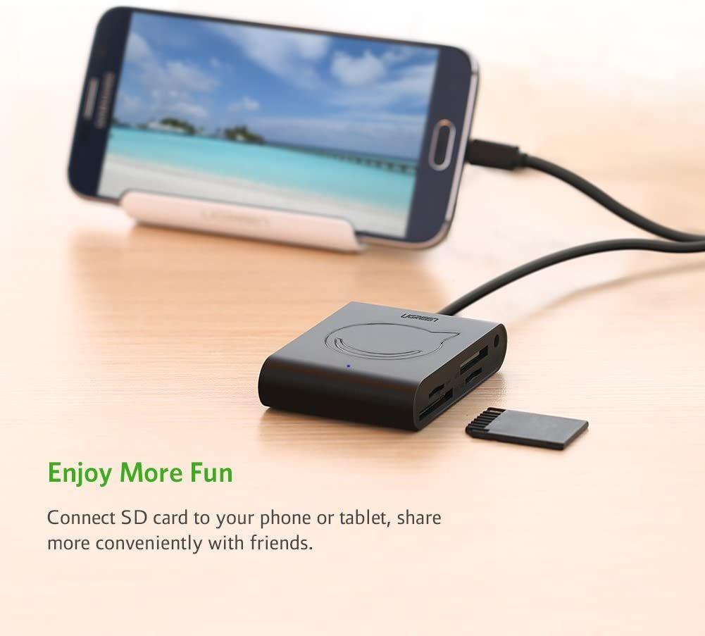 Ugreen 40753 usb 3.0 to tf + sd card readerdual card dual read white cm104 1. Input : USB 3.0 A Male 2. USB 3.0 and compatible with USB2.0 speeds up to 5Gbps 3. Output
