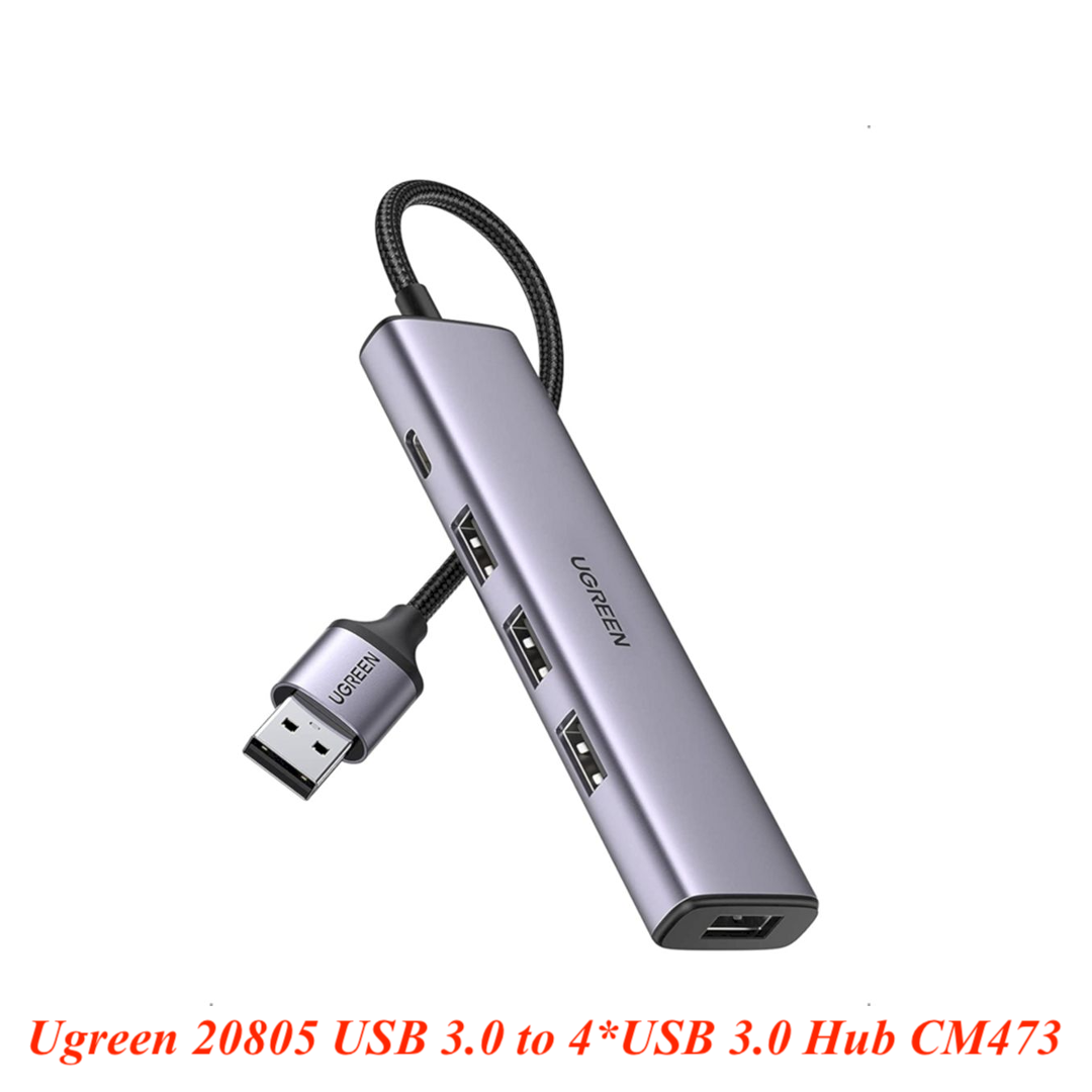 Ugreen 20290 0.5m usb 3.0 hub with powwer port màu đen 50cm cr113 1. Input: USB-A 2. Output : 4 Port USB 3.0 . có cổng usb type c nguồn 5V 3. Color : Black 4. Length