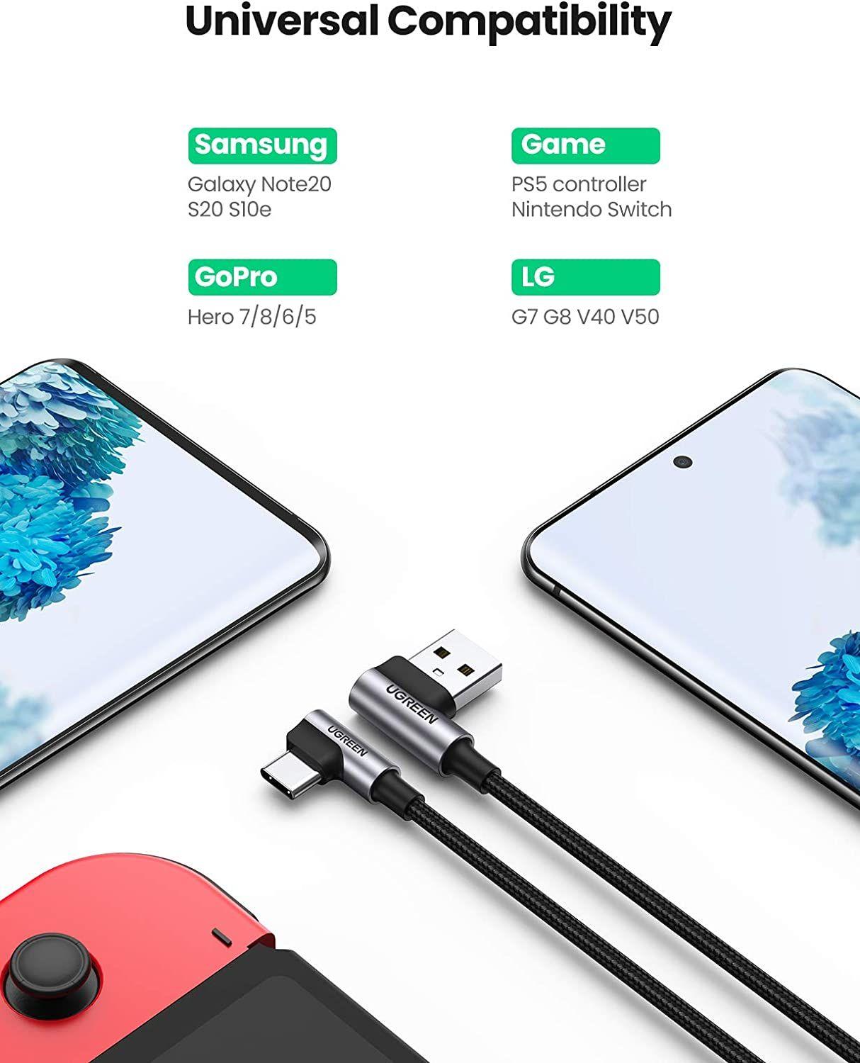 ✨Ugreen UG20857US176TK 2M 2 đầu bẻ góc 90 độ cáp usb type C ra A mạ Nickel đầu bọc nhôm chống nhiễu - HÀNG CHÍNH HÃNG