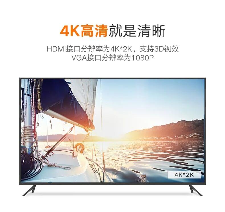 1. 8K resolution support at 60Hz and 4K resolution support at 120Hz for high-definition video and audio. 2. HDR (High Dynamic Range) support for improved color depth, contrast, and brightness. 3. Plug-and-play design, no additional