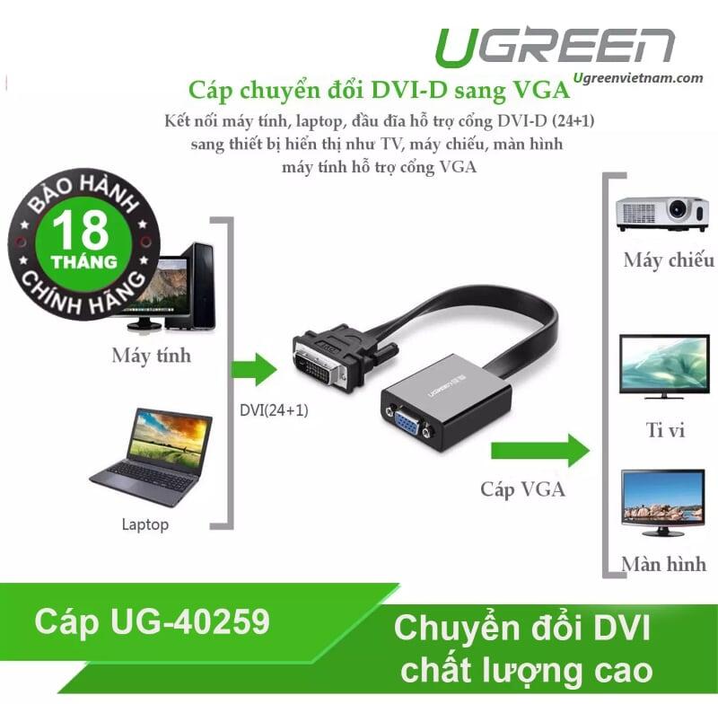 Cáp chuyển đổi DVI 24+1 to VGA Ugreen 40259 cao cấp chính hãng